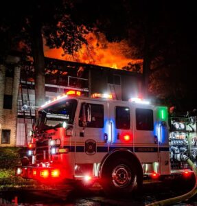 Engine 849 was dispatched as the first-due engine to the 8800 block of Hawthorne Lane for reports of an apartment fire. On arrival, crews found fire showing from the Charlie