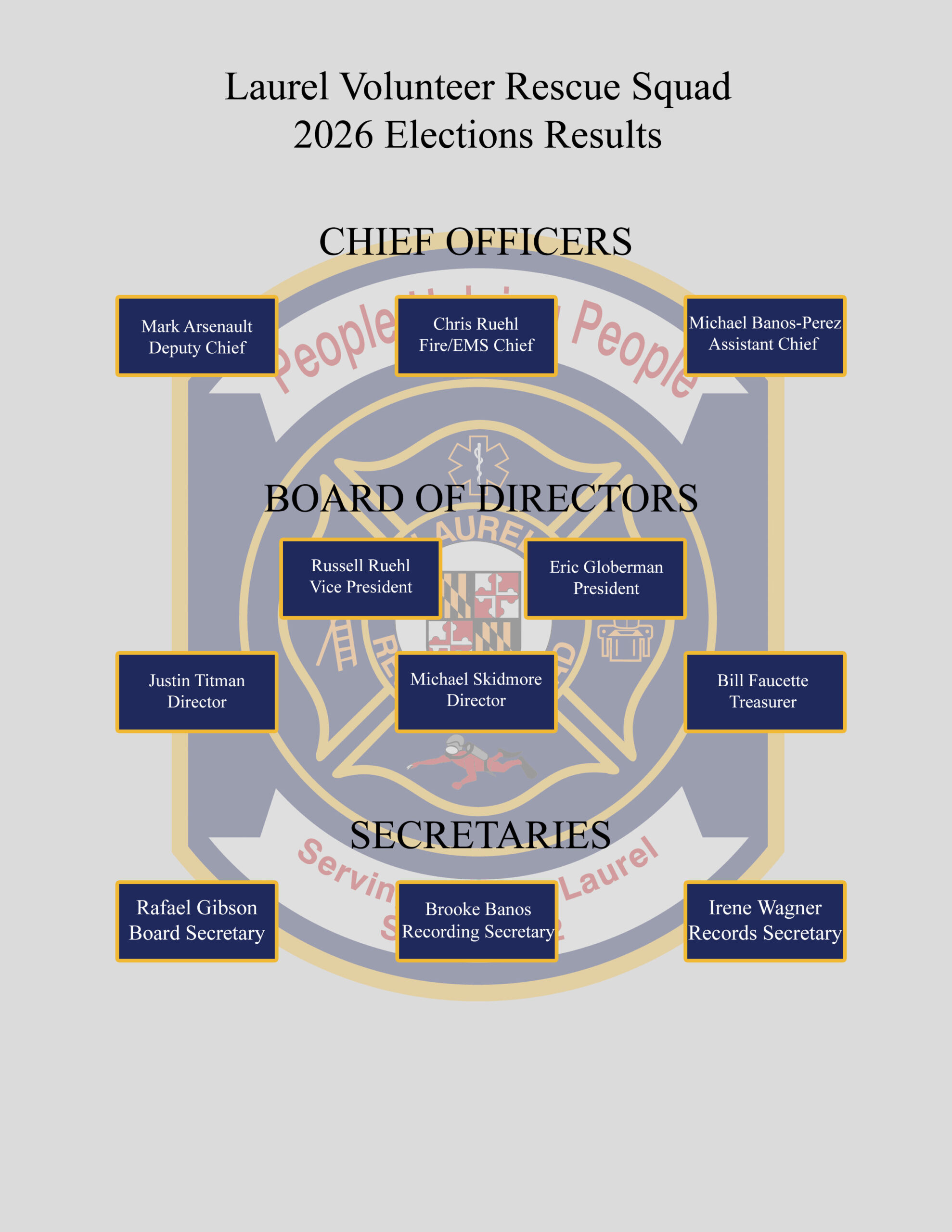 The Laurel Volunteer Rescue Squad is proud to congratulate the following members on their newly appointed positions! Your dedication, commitment, and hard work keep our mission moving forward, and we’re grateful to have such an outstanding team. Congratulations!