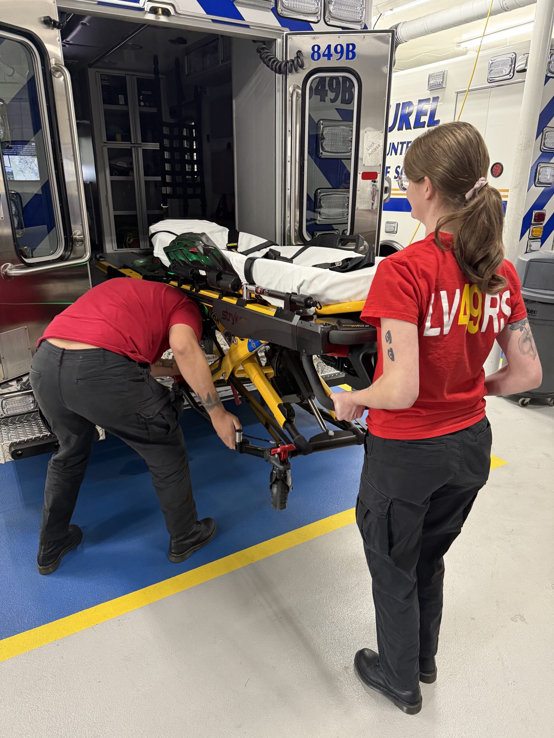 Members rolled into action with a hands-on stretcher training session, partnering up with our new probationary members. Members covered the essentials of patient transport but also got familiar with our gear. When the automatic function on our stretcher fails or powers down, we can switch it to manual mode with the click of a button, ensuring we’re always ready to move safely and efficiently, no matter the situation.